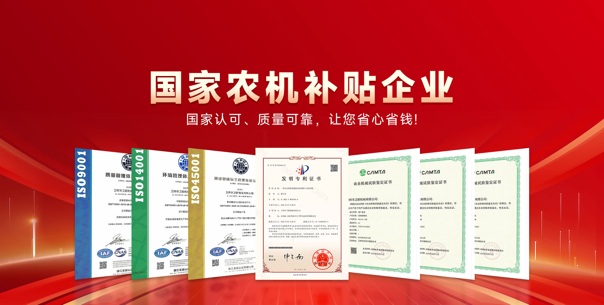 中國 河南衛輝市衛新機械有限公司坐落在中原歷史名城衛輝市,是一家集養殖機械產品研發、制造、銷售于一體的多元化高新科技公司。公司注冊資金500萬元、現有員工100余人,我們以國際企業為標準,高起點;高標準的從事養殖機械產品的研究與推廣。產品曾多次獲得上級產品質量獎,目前產品暢銷三十多個省市自治區,享有良好的市場榮譽,贏得了用戶的好評?! 」臼冀K堅持以嚴格的管理制度,保證高質量的產品服務用戶。有品質才有市場,有改善才有進步。我們相信,提供更好的產品,才是回報客戶更好的辦法?! ?019年我公司被定為河南省農機購置補貼企業。同年,我公司與北京機械研究院共同起草了粉碎機的三項國家標準和行業標準。2010年、2012年、2013年我公司被選為農機補貼企業?! ∥夜臼侵睾贤?、守信用單位,我們將以更好的產品質量、優惠的價格、良好的售后,竭誠為用戶服務。